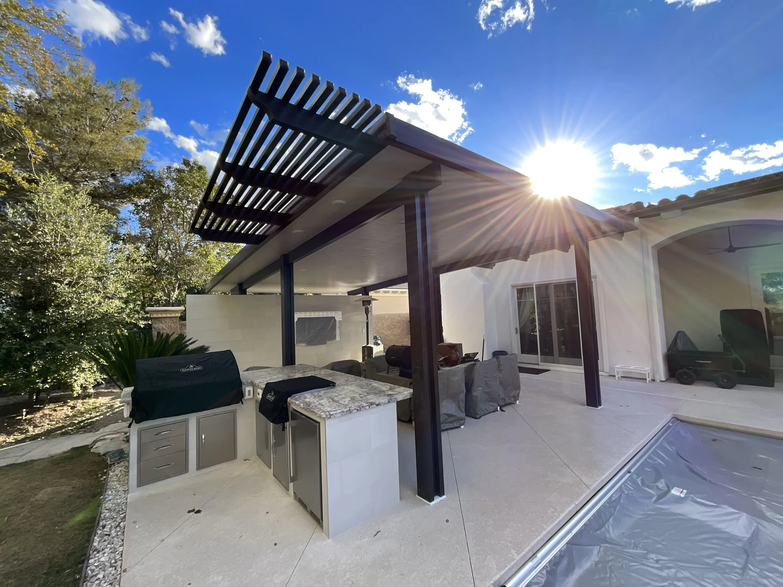 The Site provides information regarding our patio cover, pergola, and outdoor living space design and installation services (the “Services”). All descriptions, pricing, and availability of our Services are subject to change at any time without notice, at our sole discretion. We do not warrant that the quality of any products, services, information, or other material purchased or obtained by you will meet your expectations.